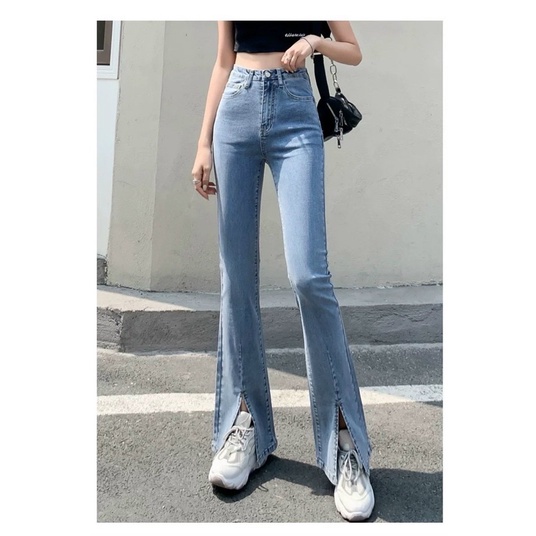 Giới thiệu Quần jeans loe xẻ trước cạp cao siêu gọn, tôn dáng