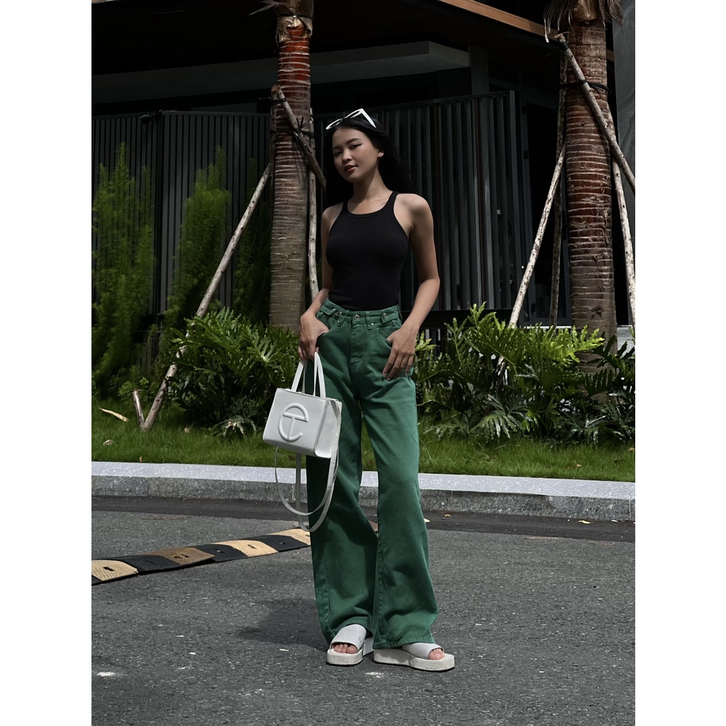 STRAIGHT-LEG BUTTON JEANS - KELLY GREEN - Màu sắc sản phẩm: xanh lá - Chất liệu: denim - Size: S, M, L, XL - Xuất xứ: Việt Nam
