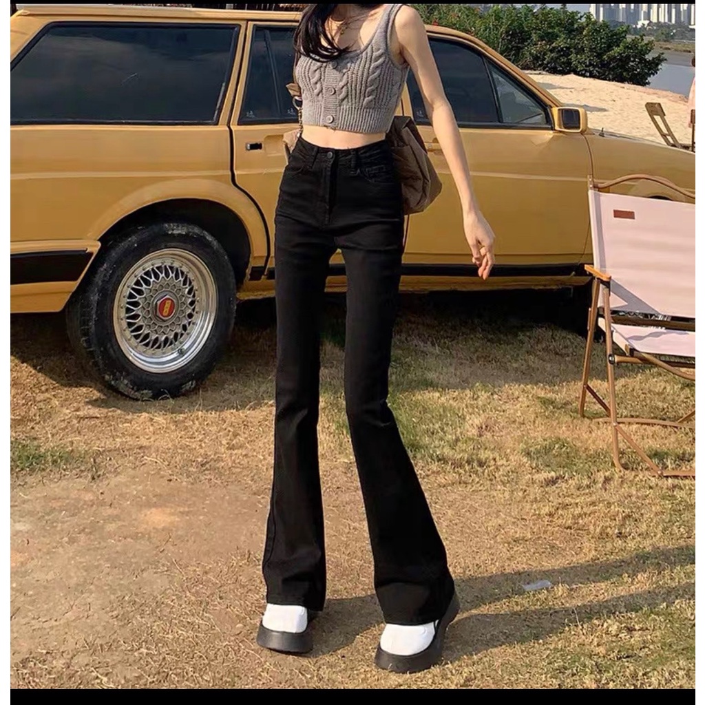 Giới thiệu Quần jeans trơn cạp cao ống loe co giãn nhiều màu - 29feb.closet - Q42