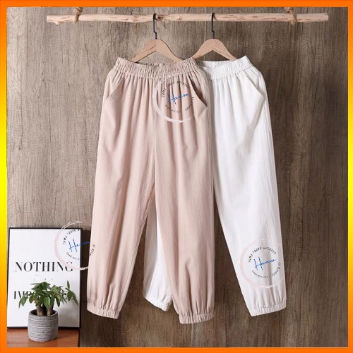 Giới thiệu Quần Jogger Nữ Dáng Dài Chất Đũi Mềm Mịn Cạp Chun Cao Bo Gấu Hanva