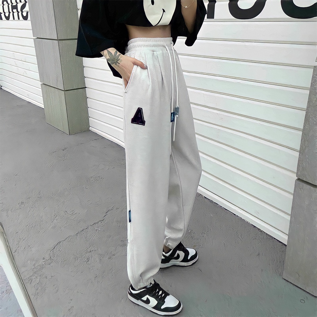 Quần Jogger Thun Tăm Dáng Rộng Thêu Chữ A 2 Màu