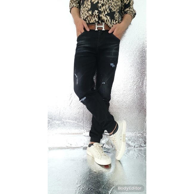 Giới thiệu Quần kogger nam màu đen rách gối chất bò cao cấp co dãn 4 chiều cực đẹp, quần rin nam QDJ35177 Nhiều mẫu mới