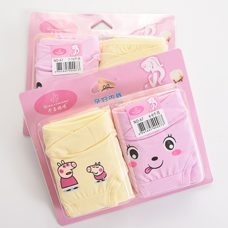 Quần lót bầu cạp chéo in hình ngộ nghĩnh QL-A7 (giao màu ngẫu nhiên) === Cam kết hàng chuẩn loại I, giao đúngsize , màu sắc ngẫu nhiên === ✅ Chất vải 100% cotton mềm mịn, thấm hút mồ hôi. ✅ Form dáng quần chíp bầu ôm mông và co giãn đàn hồi dễ chịu thoải mái ✅ Thiết kế quần cạp chéo nên mặc rất dễ chịu đặc biệt với mẹ bầu to hoặc tránh vết mổ sau sinh ✅ Mỗi Set gồm 4 quần (Đựng trong hộp rất xinh) ✅ Có 4 màu : hồng, da, vàng cam, vàng ✅ Đủ size: ---☆ Size L 40-55kg ---☆ Size XL 55-65kg