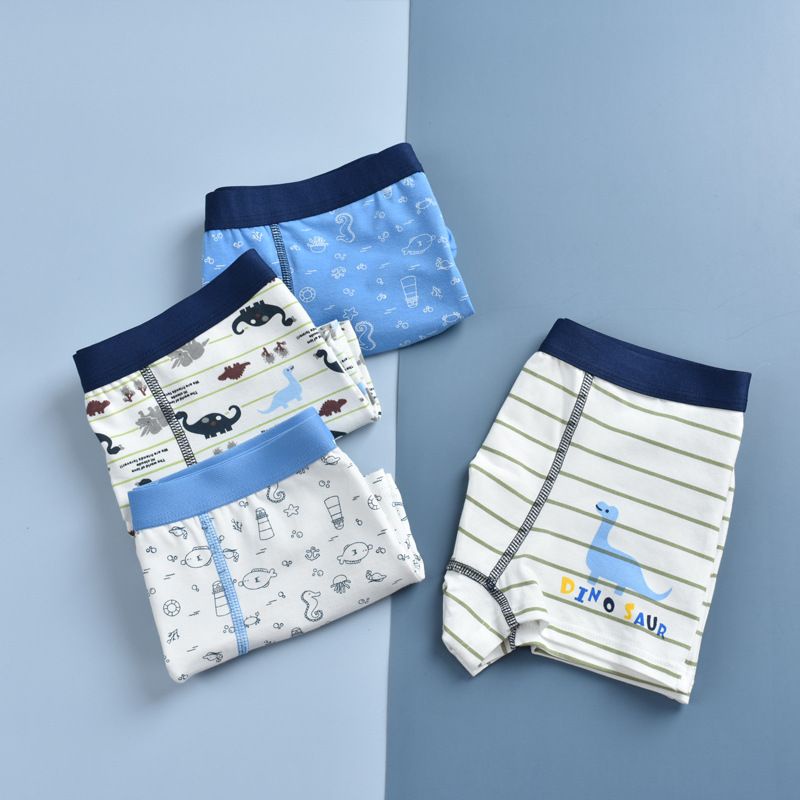 Quần lót đùi cho bé trai mẫu khủng long size đại sét 4 quần chip trẻ em nam từ 9-44kg
