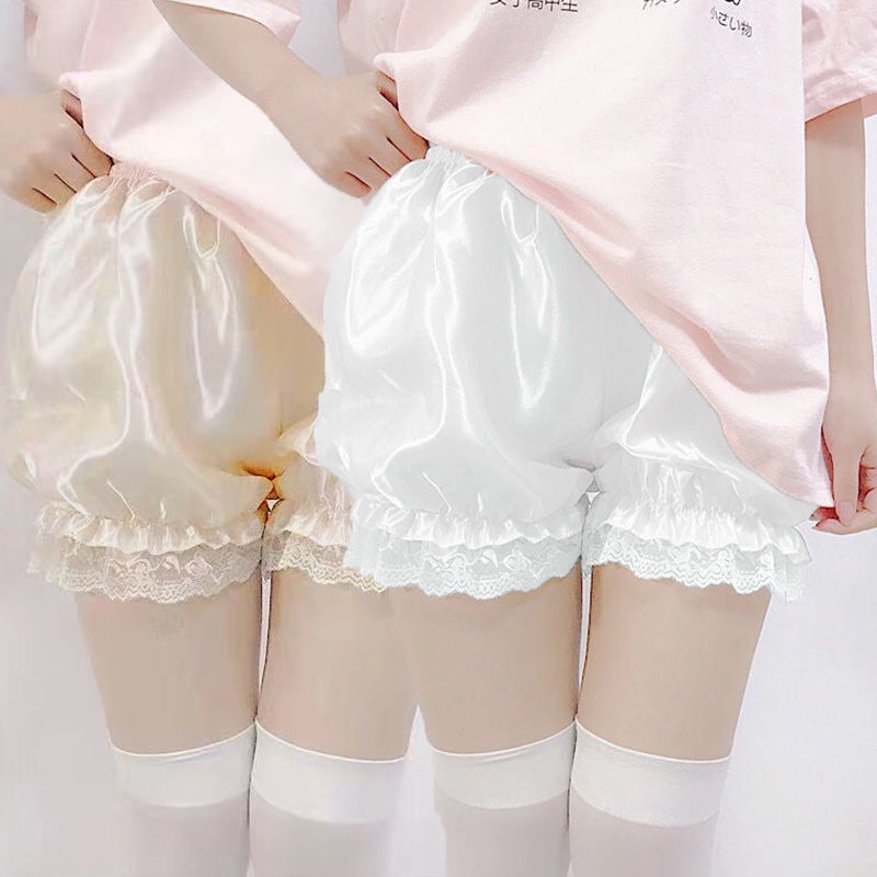 Quần Lót Ngắn Giả Váy Hai Mảnh Màu Trơn Viền Ren Gợn Sóng An Toàn