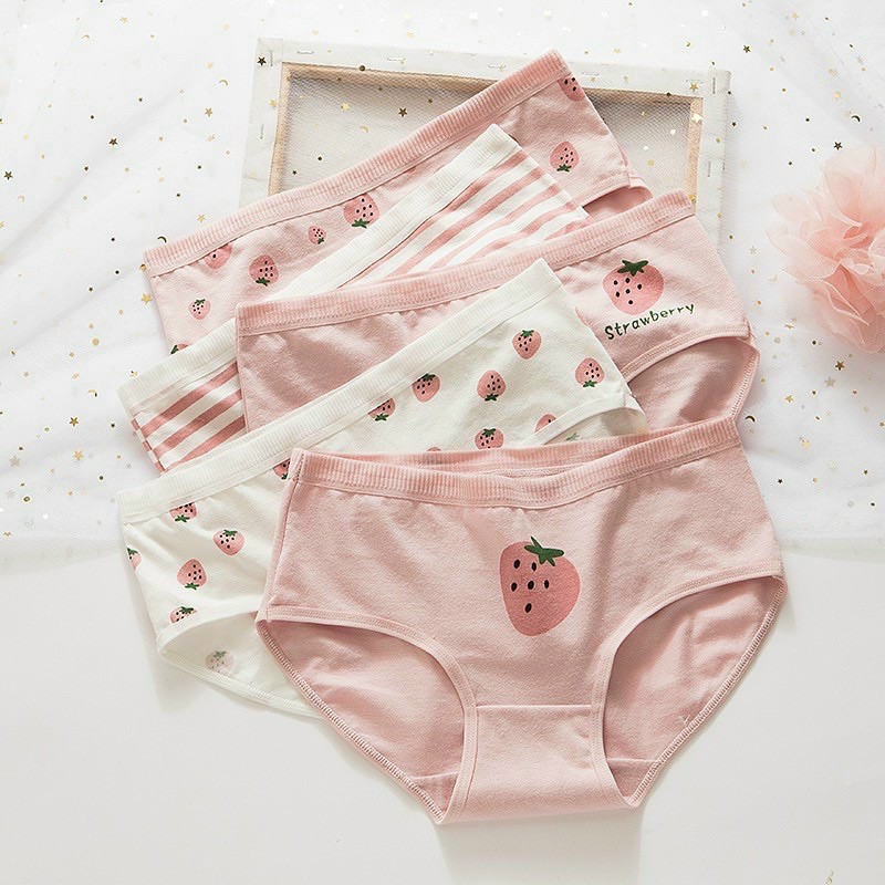 Quần lót cotton in hoạ tiết kute.trái dâu siêu xinh Size M(40-55kg)-L(55-65kg) - Shop bán màu ngẫu nhiên toàn màu dễ thương 1 cái 1 màu 5 cái 5 màu Full màu Chất liệu cotton thoáng mát, thấm hút mồ hôi. Chất cotton dày dặn không làm vải mỏng nhão đâu ạ! Hình in siêu kute, đa dạng hình.