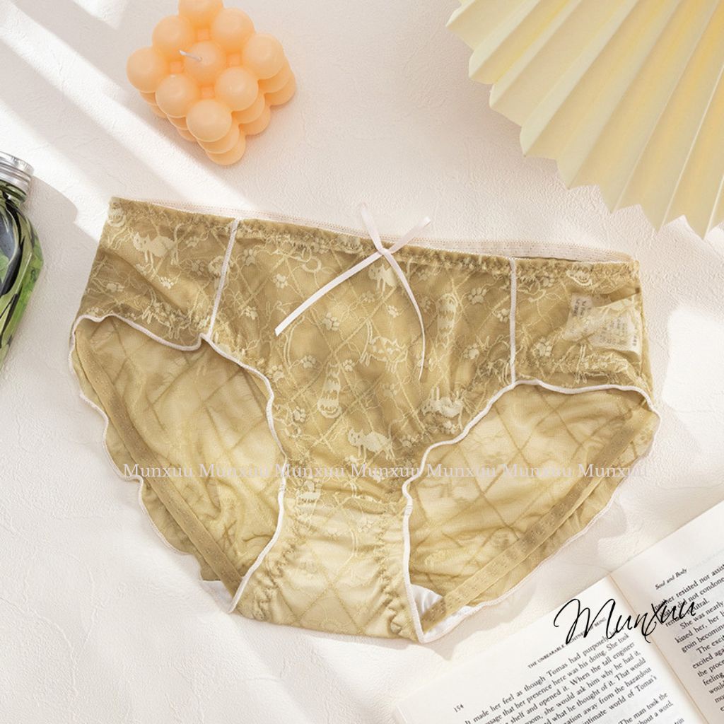 Giới thiệu Quần lót ren nữ cao cấp MUNXUU họa tiết mèo phối nơ điệu đà, chất ren mềm mại thông thoáng - QC130