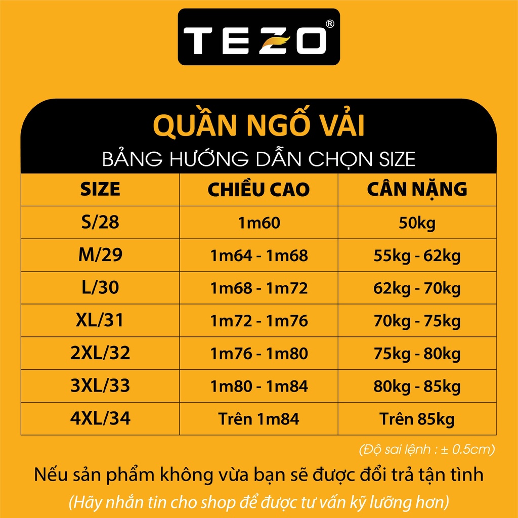 Lưu ý mua hàng: - Bảng size mang sản phẩm mang tính chất tham khảo, tùy thuộc số đo cơ thể và chất liệu từng sản phẩm sẽ có sự chênh lệch nhất định. Vui lòng chat với shop để được nhân viên tư vấn cụ thể. - Quý khách nên quay lại video trước khi mở sản phẩm để có những sự cố được TEZO xử lý nhanh chóng nhất. - Vui lòng đánh giá 5* giúp TEZO để được nhận quà từ TEZO nhé! #quandui; #quanduinam; #quanduivainam; #quanvainamdep; #quanvainamthoitrang; #quansoocnam; #quansoc; #quansoocvai; #quansoocvainam; #quanngo; #quangonam; #quanngovainam; #thoitrangnam#thoitrangnamnu#tezo