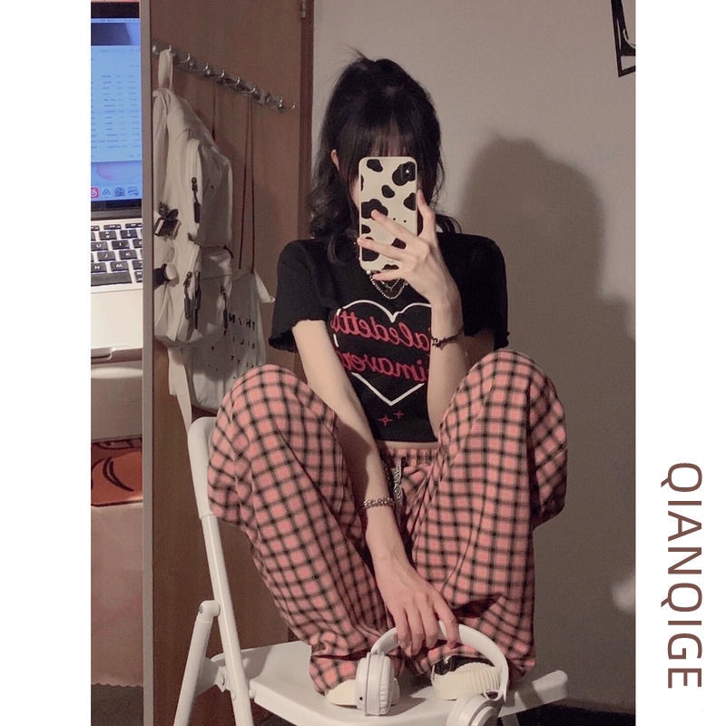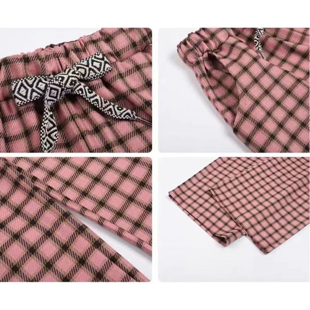 Giới thiệu Quần ống rộng Lưng Cao Họa Tiết Sọc Caro Phối Dây Rút Thời Trang Mùa Hè Cho Nữ