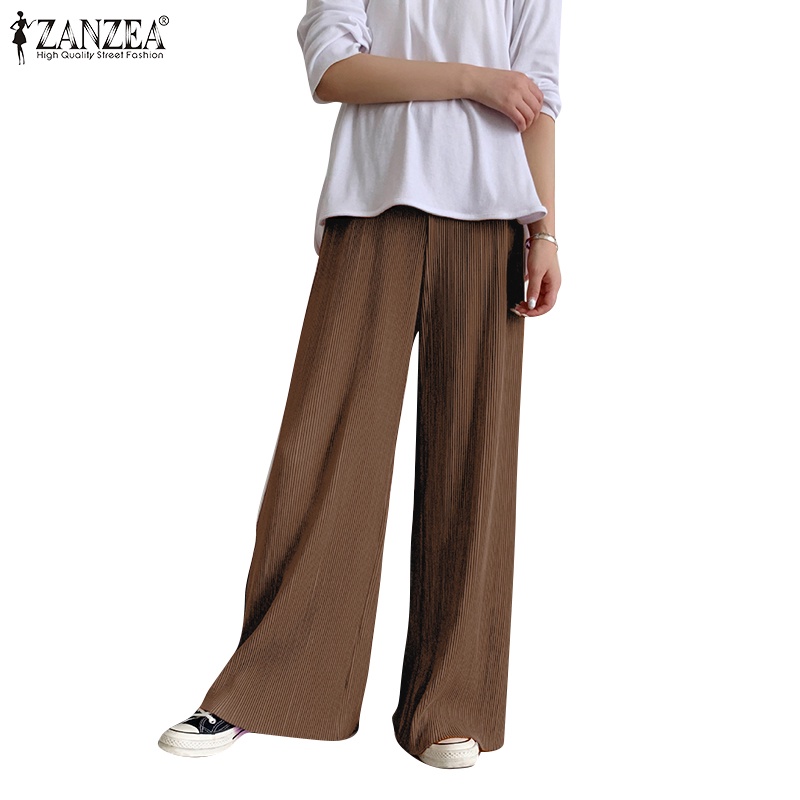 Giới thiệu Quần ống rộng ZANZEA lưng thun phối bèo cho nữ