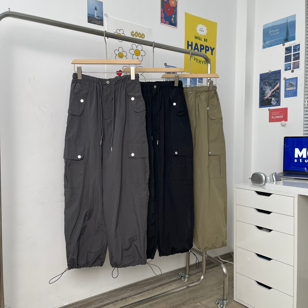 Giới thiệu Quần parachute MC21.STUDIOS chất gió unisex lưng cao cạp chun bigsize Ulzzang Streetwear Hàn Quốc pants Q3607
