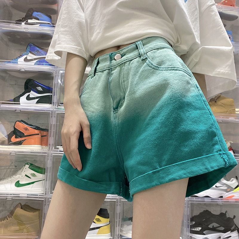 Giới thiệu Quần Short Denim Gradient 165141 Quần Short Chữ a Lưng Cao Ống Rộng Màu Sắc Tương Phản Thời Trang Cho Nữ