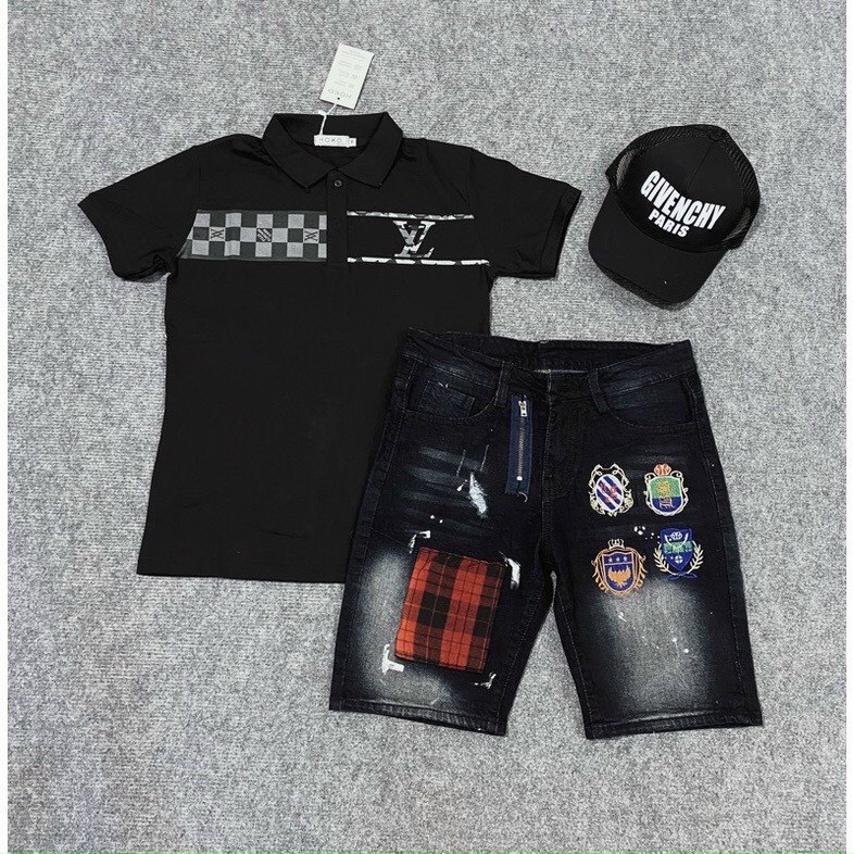 Giới thiệu Quần short jean nam màu xám đậm thêu logo phối caro dây kéo vải dày dặn co giãn bốn chiều cao cấp form regular 3001