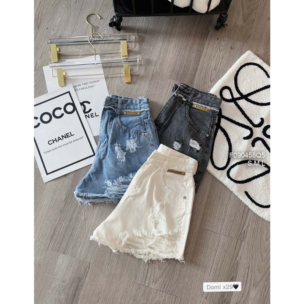 Quần short jean phối kiểu mài rách gắn mác chữ lưng cao!