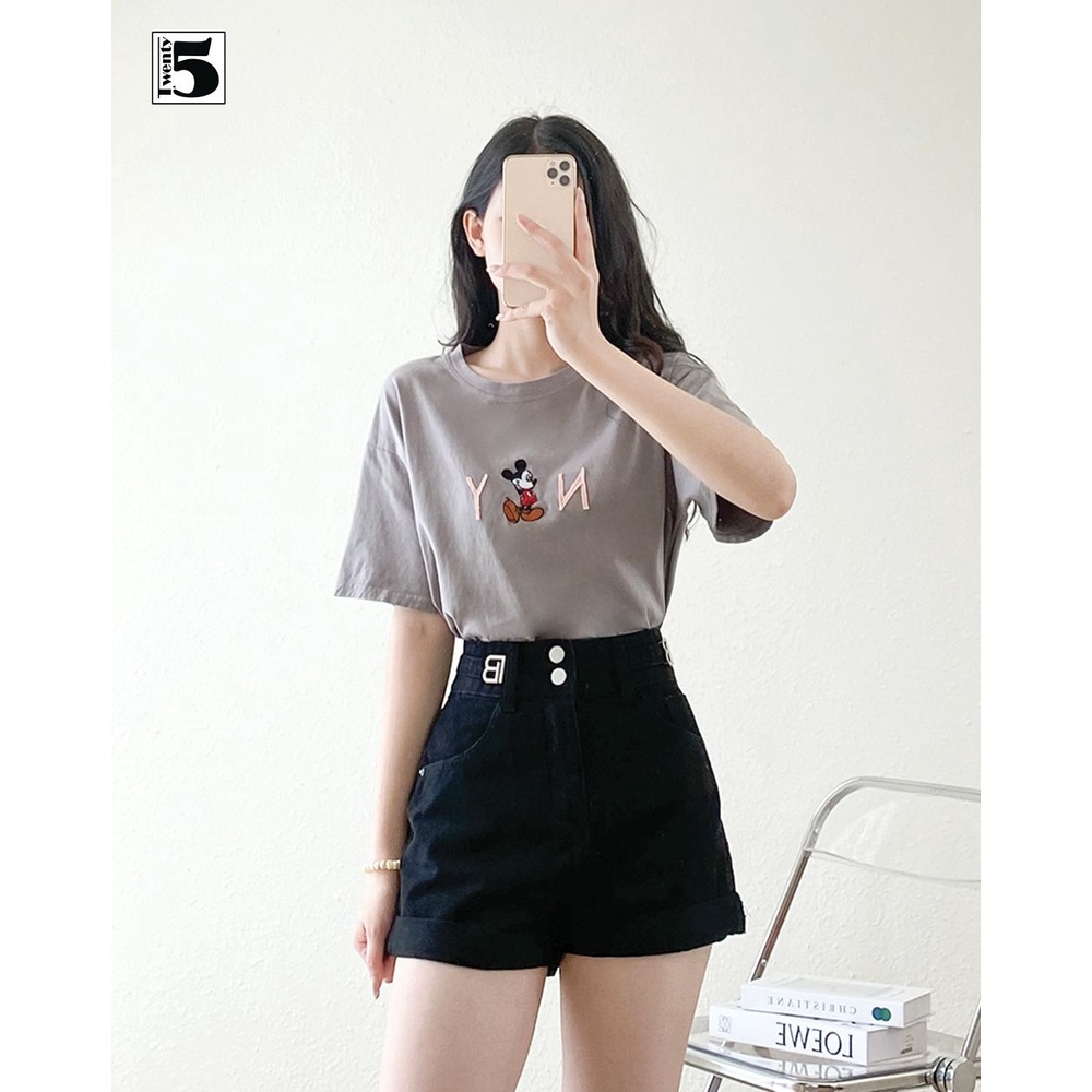 Giới thiệu Quần short jeans nữ Twentyfive cúc đôi gấu gập cạp cao tôn dáng 4093