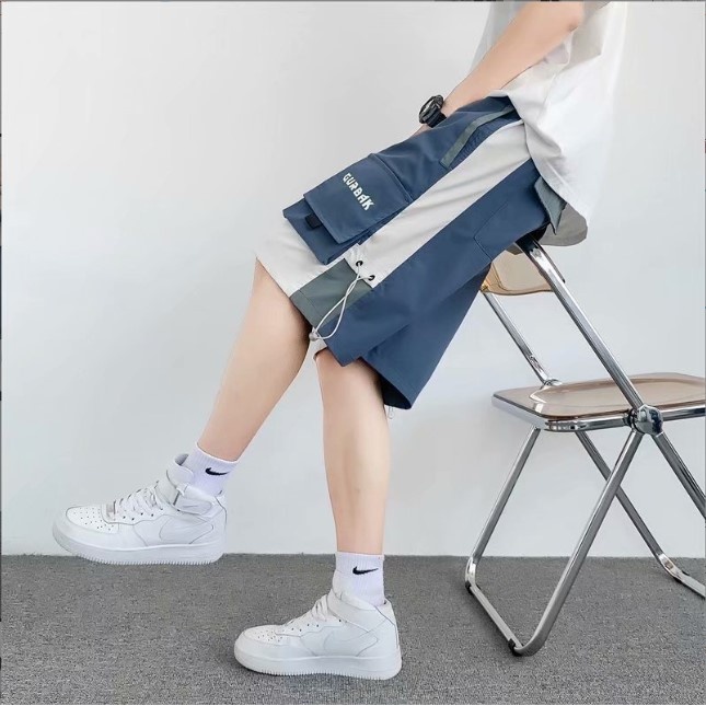 Quần short nam rộng túi hộp lưng chun dây buộc màu đen xanh