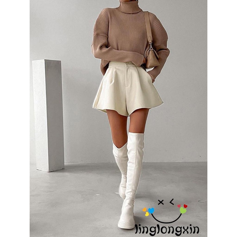 Giới thiệu Quần Short Nữ Cạp Cao Ống Rộng Màu Trơn Linglongxi2