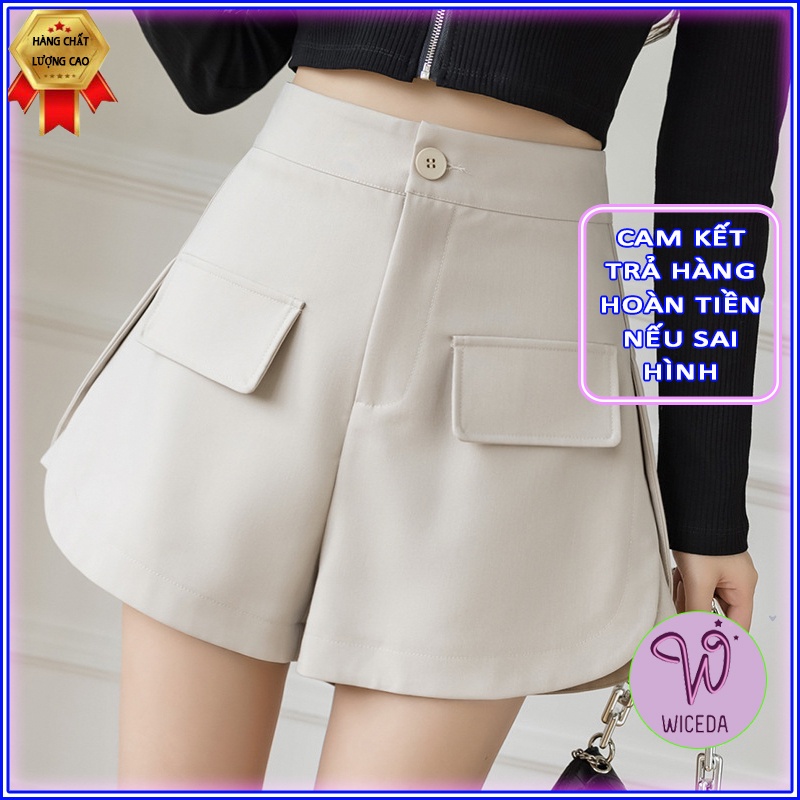 Giới thiệu Quần short nữ cap cao xẻ gấu Wiceda , quần đùi lưng cao tôn dáng 3 màu đen kem nâu tây mặc đi chơi ở nhà QCC550