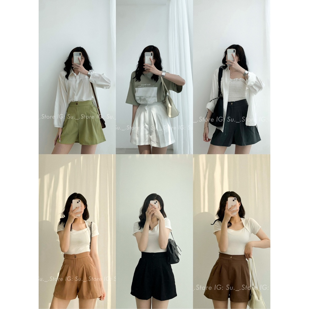 Quần short nữ cạp khuy lưng chun ống rộng xếp ly nhiều màu basic, Quần đùi sooc nữ vải trơn cạp cao lưng chun ống rộng 🌿 Chất liệu: vải umi 🌿 Kích Cỡ: 2 size S, M 🌿 Màu sắc sản phẩm: Đen, Nâu đậm, nâu nhạt, Xạnh cốm, Xám đậm, trắng 🌿 Đặc điểm riêng: mặc thoải mái Luôn tuyển sỉ và CTV: 0387007915