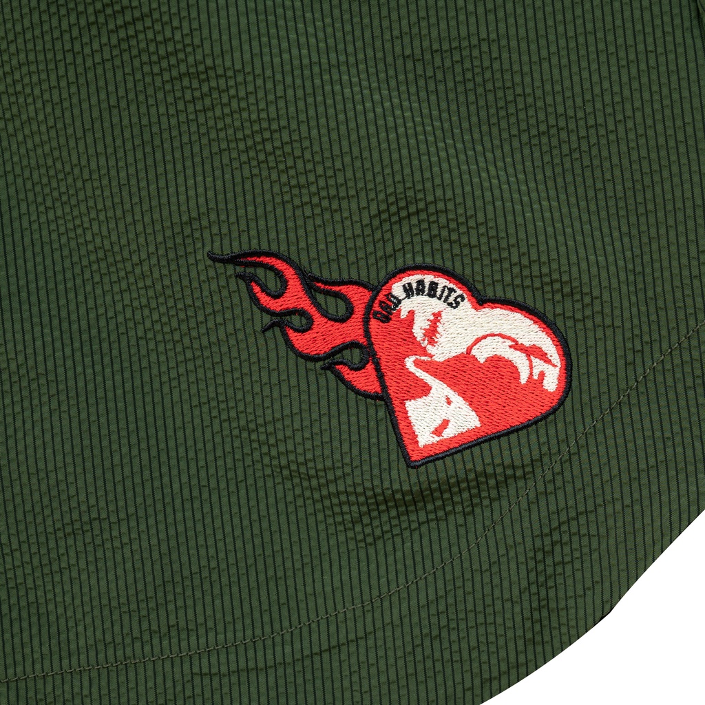 |Features:• Chất liệu: Dù • Logo Bad Habits & Graphic trái tim thêu trực tiếp lên bề vải Fitting: • Model cao 1m76 – cân nặng 60kg• Quần mặc size L (OVERSIZED CROP FIT)