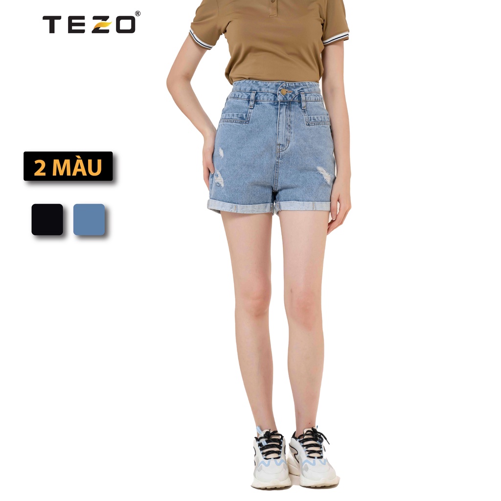 Quần sooc bò xước nữ Tezo cạp cao túi vuông phong cách trẻ trung năng động 2203QSBT03