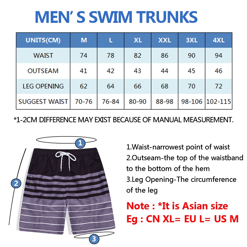 Điểm bán hàng 1.Chất liệu 100%: Polyester 2.Được làm từ Polyester mềm, chống nước với lưới bên trong 3.Đóng dây rút 4.Quần đùi bơi chất lượng cao: thiết kế sạch sẽ, vừa vặn đáng tin cậy và các tùy chọn màu sắc linh hoạt 5.Chất liệu vải nhanh khô: quần đùi siêu mềm mịn và thoáng mát tạo cảm giác thoải mái cả ngày, với công nghệ chống thấm và cát cao cấp 6.Quần short Board sành điệu: cạp chun có dây rút; đường cắt ba chiều, đường may phẳng tạo thêm sự mềm mại và bảo vệ mà không gây nứt nẻ và kích ứng da 7.Thiết kế túi: túi sâu hai bên và một túi khóa dán phía sau, có thể cất giữ ví, chìa khóa, điện thoại di động hoặc các vật dụng nhỏ khác 8.Thích hợp cho mọi hoàn cảnh: bơi lội, kỳ nghỉ bãi biển, chạy, thể thao bóng, dã ngoại gia đình, v.v.