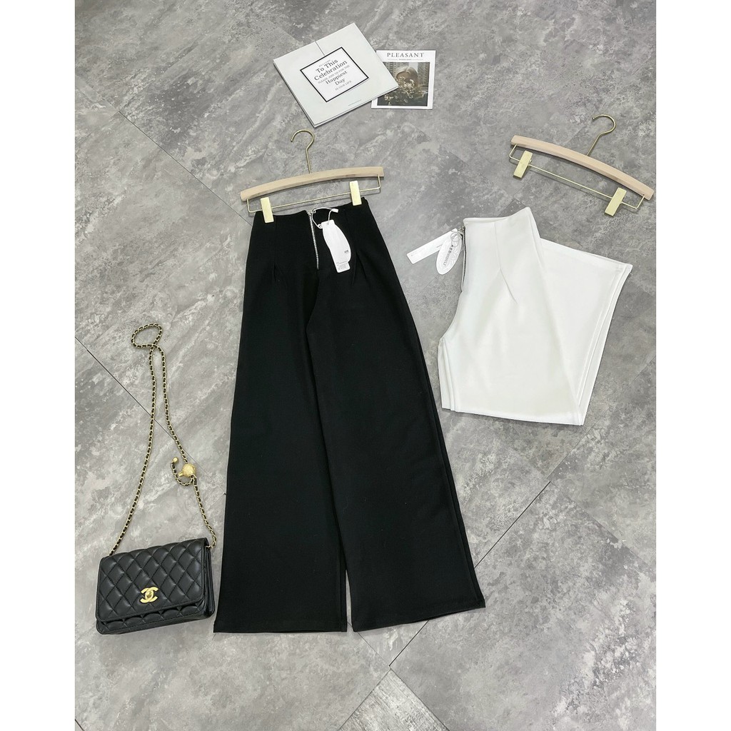 Giới thiệu Quần suông cạp cao gen bụng khóa trước ống rộng - quần ống rộng cạp cao