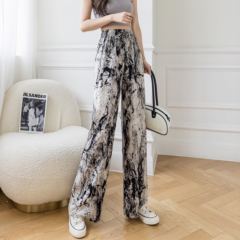 Giới thiệu Quần suông lụa hoạ tiết hottrend cạp chun dây rút chất mát, Quần suông lụa hoạ tiết độc lạ