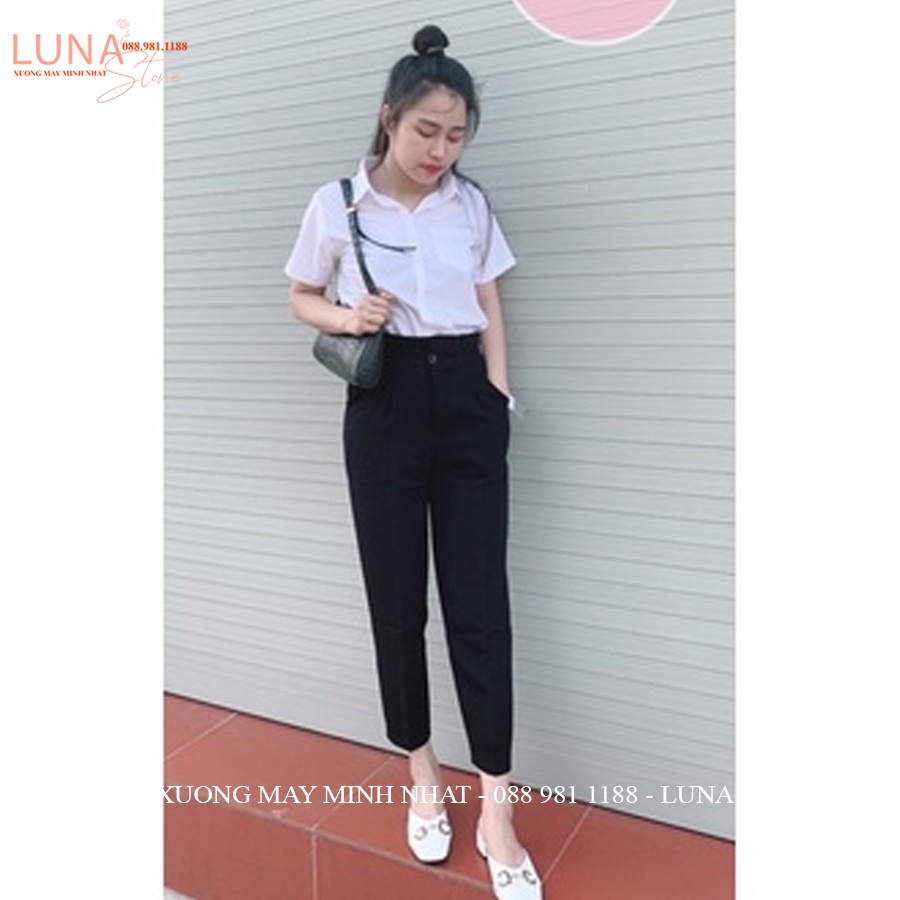 Giới thiệu Quần tây cạp bèo lưng cao đi học làm công sở màu Đen kiểu quần baggy công sở học sinh vải Vitex dày mềm dáng âu nữ dài