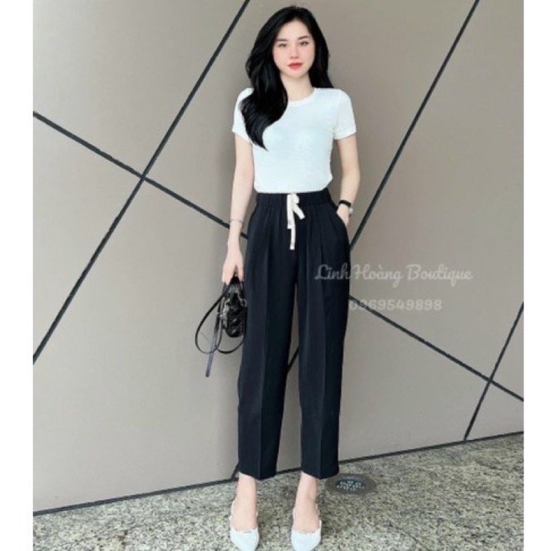 Giới thiệu Quần tây nữ lưng cao cạp chun dáng quần baggy ống đứng suông dài