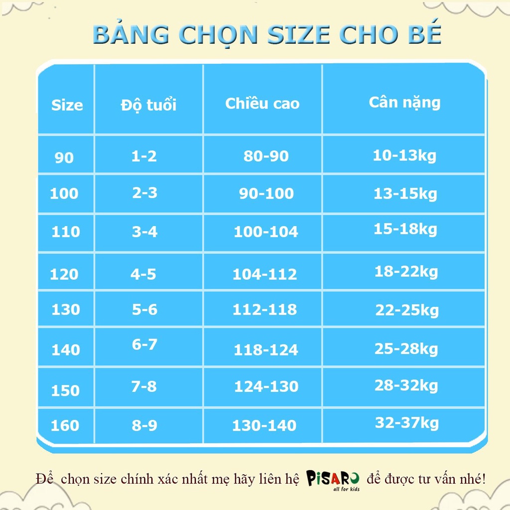 🌟 HƯỚNG DẪN CHỌN SIZE: Nếu bé có thân hình mảnh dẻ, ba mẹ nên chọn cho bé theo chiều cao. Nếu bé mũm mĩm, ba mẹ chọn cho con theo cần nặng.