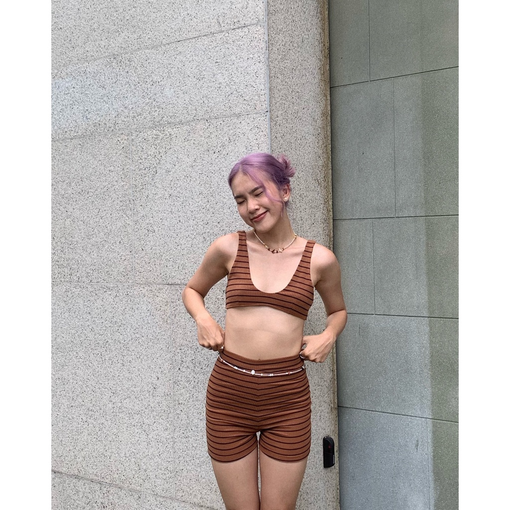 Giới thiệu Quần thun ngắn kẻ sọc, là min - CLAY KNIT SHORTS