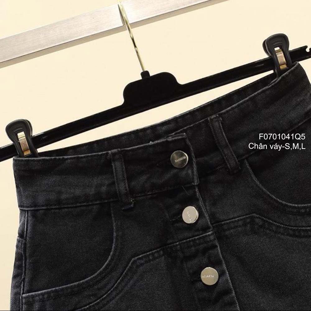 Giới thiệu Quần váy jean đen ngắn phối nút lưng cao có lót quần trong hàng đẹp!