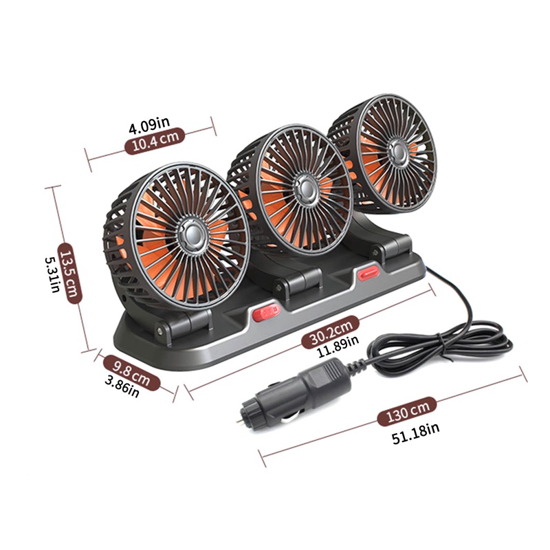 1, Quạt ba đầu: Quạt ô tô được thiết kế với 3 đầu quạt, có thể làm mát trình điều khiển cùng lúc, tương thích với bộ sạc ô tô, máy tính xách tay, ngân hàng điện, ổ cắm USB, v.v.