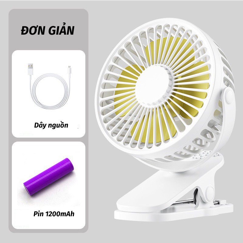Quạt mini kẹp bàn, Quạt kẹp bàn xoay 360 độ Pin Tích Điện Chân Kẹp Bàn, Kẹp Xe Đẩy - pin sạc, 3 cấp độ