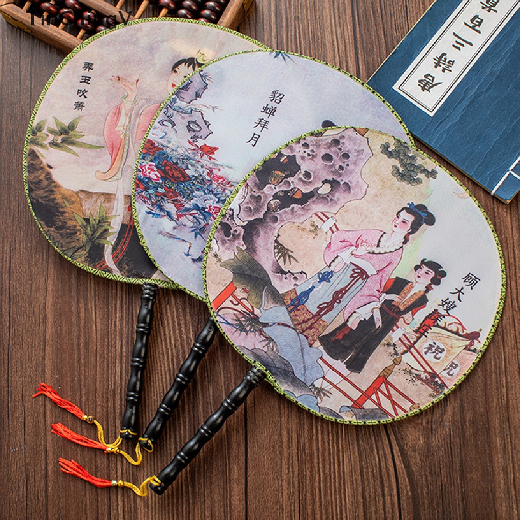 Giới thiệu Quạt Lụa Cầm Tay Dáng Tròn In Họa Tiết Phong Cách Trung Hoa Cổ Điển