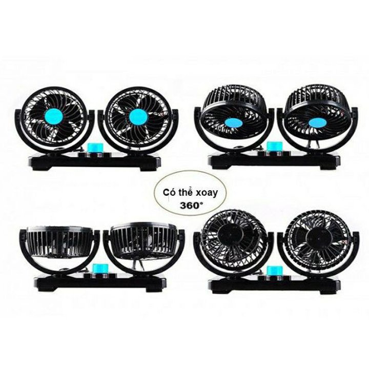 Quạt máy đôi mini 12v, 24v xoay 360 tiện ích trên ô tô, xe hơi cao cấp