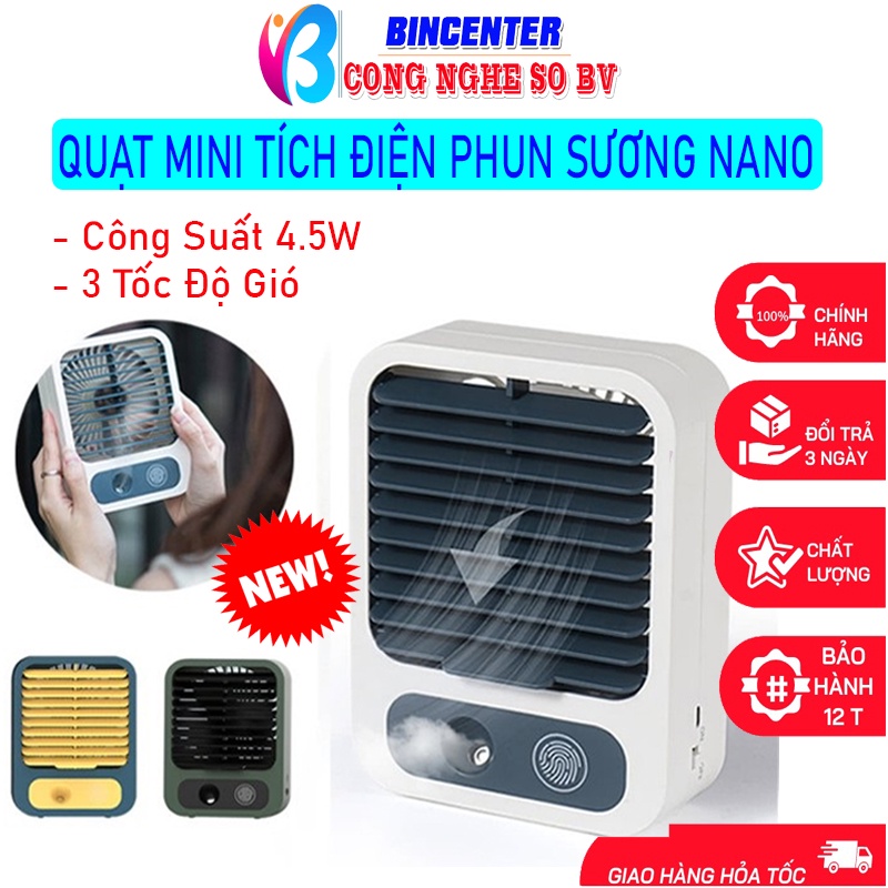 Quạt mini phun sương tạo ẩm 2in1, Quạt hơi nước 3 tốc độ gió công suất 4,5W, Sạc USB - Quạt tích điện mini phun sương