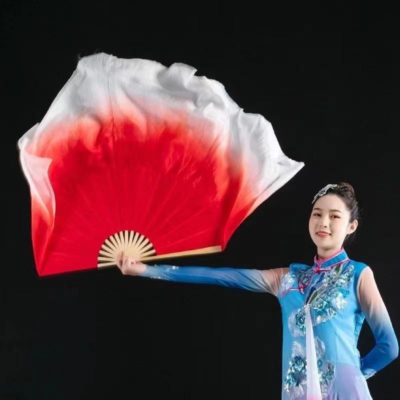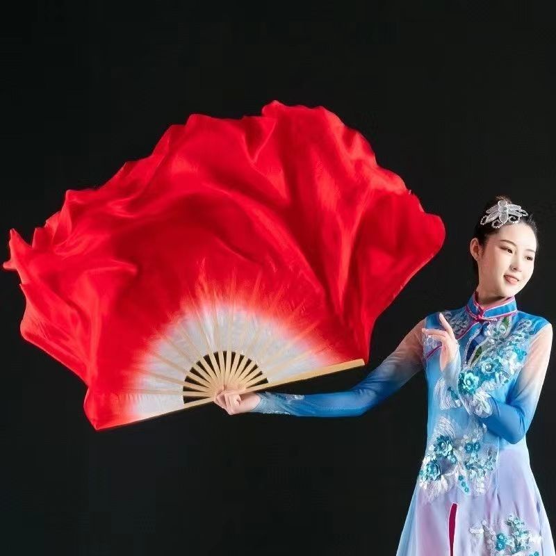 Quạt khiêu vũ cổ điển Màu Gradient Quạt lụa dài Mô phỏng Quạt múa lụa Quạt khiêu vũ lớn màu đỏ Kéo dài Quạt khiêu vũ dành cho người lớn Quạt khiêu vũ Quạt ủng hộ