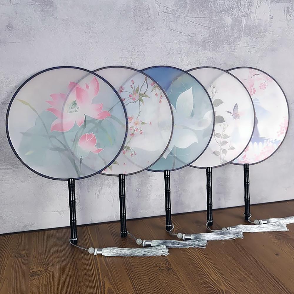 Gói bao gồm: 1Pc * Quạt tròn in Quạt khiêu vũ Trang trí nội thất Quạt che nắng Người hâm mộ Quà tặng Thủ công mỹ nghệ In cổ điển Có tay cầm bằng gỗ Phong cách Trung Quốc Phong cách cổ xưa