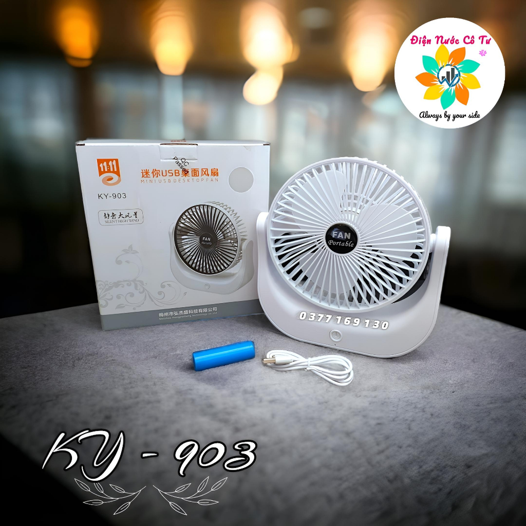 Giới thiệu Quạt sạc để bàn mini KY-903 tích điện 3 tốc độ quạt êm không ồn thích hợp du lịch cắm trại