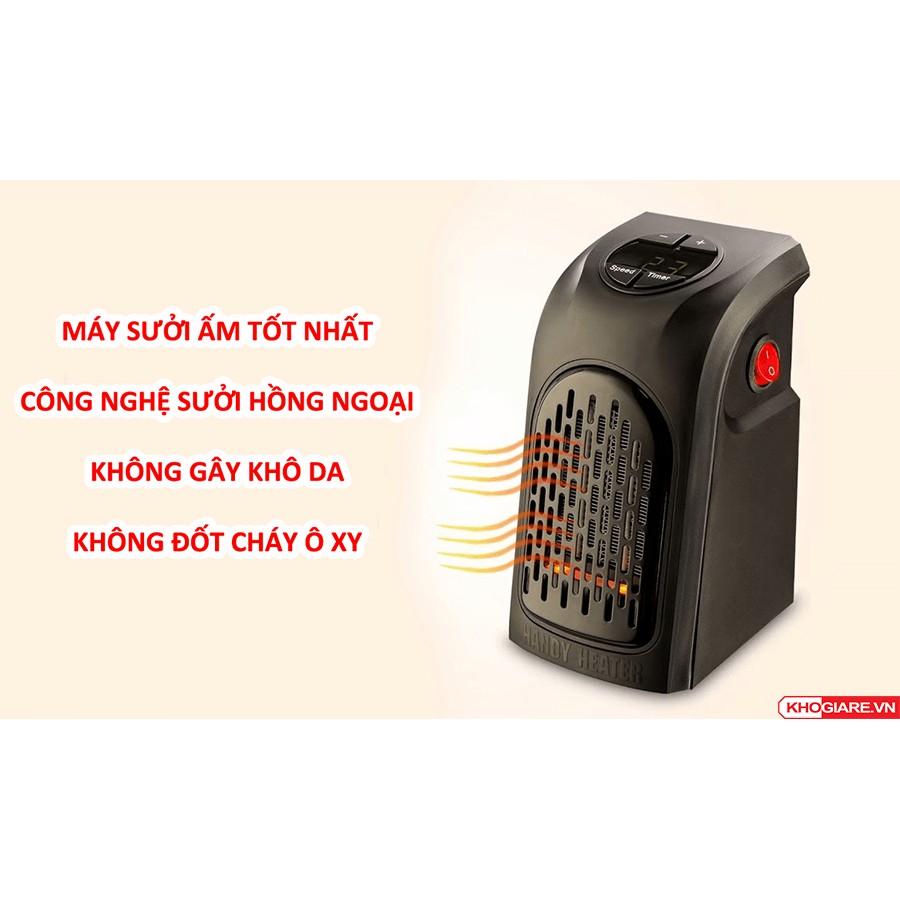 1. Quạt sưởi ấm tiết kiệm điện Handy Heater có hẹn giờ được thiết kế với kích thước nhỏ gọn 12*8.5*16cm, giúp cho việc di chuyển đến mọi nơi trong phòng hay di chuyển qua các phòng trong ngôi nhà hết sức dễ dàng. 2. Thiết kế tinh tế, phù hợp với mọi nơi trong nhà: phòng khách, phòng ngủ, phòng tắm… 3. Công nghệ làm nóng bằng hồng ngoại cực kỳ hiệu quả bởi vì nó sử dụng năng lượng ít hơn nhiều so với máy sưởi tiêu chuẩn, lớn hơn. Chỉ có 400 watt sẽ cho bạn phạm vi nhiệt độ lên đến 32 ° C, và nó có thể lập trình đầy đủ để bạn có thể đặt nhiệt độ hoàn hảo, dễ dàng đọc từ màn hình hiển thị LED, cho phù hợp với điều kiện. 4. Nhỏ gọn, dễ dàng sử dụng. 5. An toàn tuyệt đối, không gây khô da, không đốt cháy ô xy. 6. Việc sử dụng quạt sưởi ấm Handy Heater có hẹn giờ cũng vô cùng đơn giản, bạn chỉ cần cắm điện và chiếc máy sẽ hoạt động, nhanh chóng làm ấm căn phòng của bạn. 7. Đặc biệt, màn hình LED hiển thị mức nhiệt độ giúp bạn có thể dễ dàng tăng giảm nhiệt độ trong phòng để phù hợp, thoải mái nhất. Sản phẩm còn có chức năng hẹn giờ tắt, bạn có thể đặt trước thời gian mình muốn sử dụng, sau đó đi yên tâm đi ngủ mà không cần lo lắng về việc phải tỉnh giấc để tắt máy. 8. Chế độ điều chỉnh tốc độ gió cũng sẽ giúp cho bạn có những lựa chọn phù hợp nhất để mang lại cảm giác thoải mái nhất, ấm áp nhất khi ở trong căn phòng của mình.