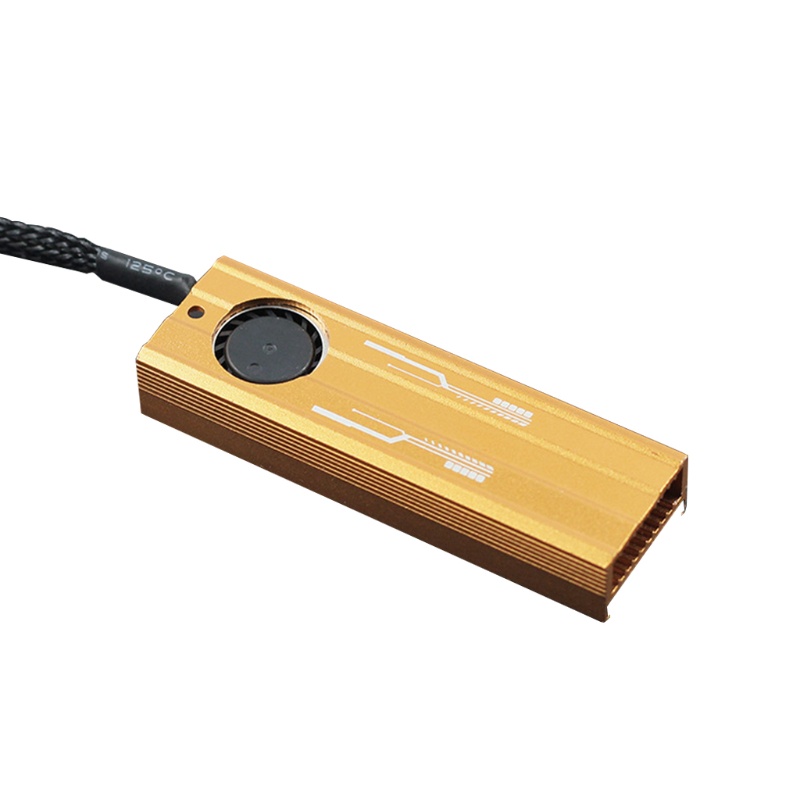 Thông số kỹ thuật: Vật liệu tản nhiệt: Hợp kim nhôm Ứng dụng: cho Ổ cứng thể rắn M.2 2280 Tốc độ quạt: 8000PRM Kích thước: xấp xỉ. 79x25x14mm / 3,11x0,98x0,55in Màu sắc: đen, vàng