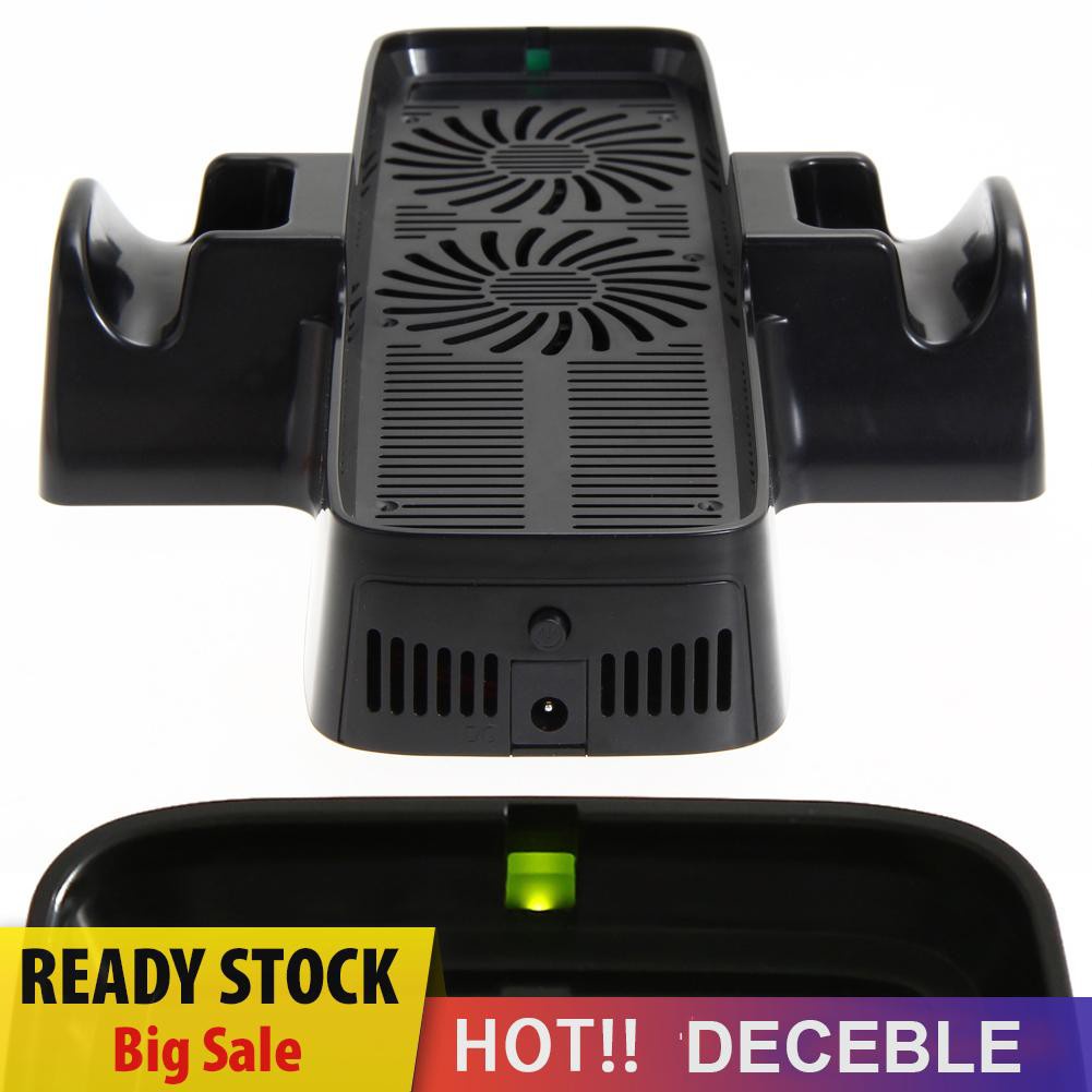 Features: Made of ABS material, durable to use Can hold two controllers simultaneously Console cooling fan with dual dock for XBOX 360 game controller Built-in fans to disperse heat from your console, improve the operational lifespan