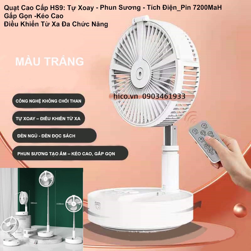 Quạt tích điện gấp gọn đa năng phun sương hơi nước H9 HS9 Quạt không dây phun sương hơi nước gấp gọn tiện lợi di chuyển