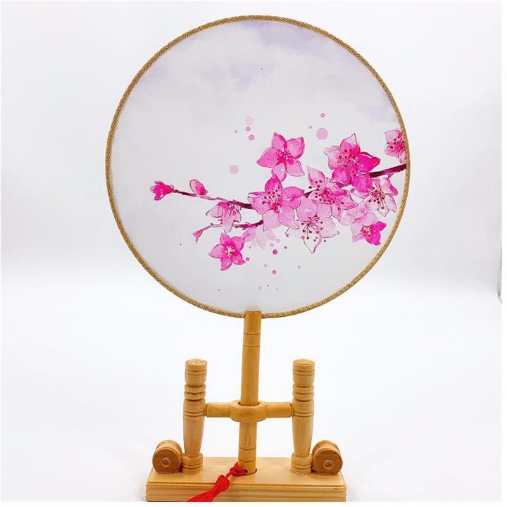 Quạt tròn cổ trang hoa đào hồng tam sinh tam thế phong cách cổ trang quạt cầm tay cổ trang cổ điển cosplay