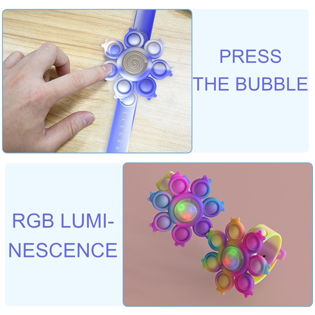 ★[Adjustable Strap] Seven degrees adjustable strap, multiple adjustment holes on the fingertip bracelet, adjust the size as you like, suitable for any wrist. It's fun to press the bubble down to soothe and relieve stress. Stir the toy surface to make it spin up.