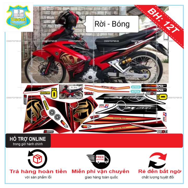 #Tem Được Cắt Vi Tính! Chỉ việc bóc ra là dán. ### Cam Kết Tem 3 Lớp Cao Cấp Co Dãn 4 Chiều! ### Tem in trên máy in Nhật Bản và được cán thêm một lớp giấy bảo vệ mực nên Tem rất bền! ### Được bảo hành trọn đời ko phai màu. THÔNG TIN SẢN PHẨM: + 1 bộ đủ dán 1 xe + Chất liệu: Decal cao cấp + Đặc tính: Tem dán cao cấp, CHỐNG NƯỚC siêu tốt, sản phẩm sáng bóng cực bền với họa tiết đặc sắc + Công dụng: Trang trí. + Bảo hành trọn đời KHÔNG bay màu + Trọng lượng: 400g HƯỚNG DẪN SỬ DỤNG: 1/ Chùi, lau, làm sạch bề mặt dán 2/ Tách lớp tráng của keo dính và dán vào bề mặt của sản phẩm 3/ Tách lớp tráng của keo dính ở mặt đối diện còn lại và dán vào bề mặt muốn dán 4/ Sử dụng máy sấy tóc để tăng độ bám dính và giữ độ dính của sản phẩm lâu hơn 5/ Khi dán bóc đâu dán đó (miết từ từ từng ít một ) 6/ Dùng máy khò để có thể tăng độ co dãn và bám dính của Tem 7/ Tuyệt đối không được sử dụng nhiệt hoặc lửa khi dán decal CROM VÀ DECAL 7 MÀU. 8/ Sẽ có những sai số do kích thước ko chuẩn như zin được, nên xin quý khách thông cảm cho những sai số * Thời gian vận chuyển tới tay khách hàng : + Nội thành TPHCM : từ1-2 ngày (tính kể từ ngày shiper nhận hàng) + Khu vực miền Nam : từ 3-4 ngày. (tính kể từ ngày shiper nhận hàng) + Khu vực miền Trung : từ 4-5 ngày. (tính kể từ ngày shiper nhận hàng) + Các tỉnh miền Bắc : Từ 4-6 ngày. (tính kể từ ngày shiper nhận hàng) DO ẢNH HƯỞNG CỦA DỊCH COVID NÊN SẼ CÓ 1 SỐ ĐỊA PHƯƠNG GIAO CHẬM HƠN 1-2 ngày MONG QUÍ KHÁCH THÔNG CẢM GIÙM SHOP VÀ SHIPER Ạ Nếu sản phẩm có lỗi hoặc sai sót gì thì xin quý khách vui lòng đừng vội đánh giá, mà hãy nhắn tin cho shop để có phương án giải quyết tốt nhất nhé Lưu ý màu sắc : Do một số yếu tố như thiết bị chụp thiếu ánh sáng... nên màu sắc sản phẩm có thể sẽ lệch so với trên ảnh. Lưu ý Bảo Hành : Tất cả các trường hợp nhận tem không đúng mẫu, số lượng hoặc trong quá trình sử dụng bị lỗi không như mong muốn. Anh chị vui lòng chụp lại ảnh chi tiết và liên hệ qua inbox hoặc gọi trực tiếp để được tư vấn, hỗ trợ, đổi trả nhé! --- Thông tin sản phẩm theo Nghị định 85 - Đơn vị sản xuất : SHINDECAL - Địa chỉ : 55/11 Tổ 18 Âp Hậu Lân Xã Bà Điểm Huyện Hốc Môn TP HỒ CHÍ MINH. - Xuất xứ : VIỆT NAM