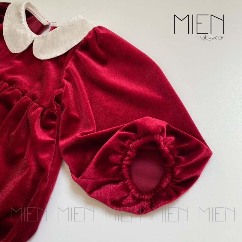 Giới thiệu (R09) Bodysuit nhung đỏ đô cổ sen tết cho bé gái MIEN