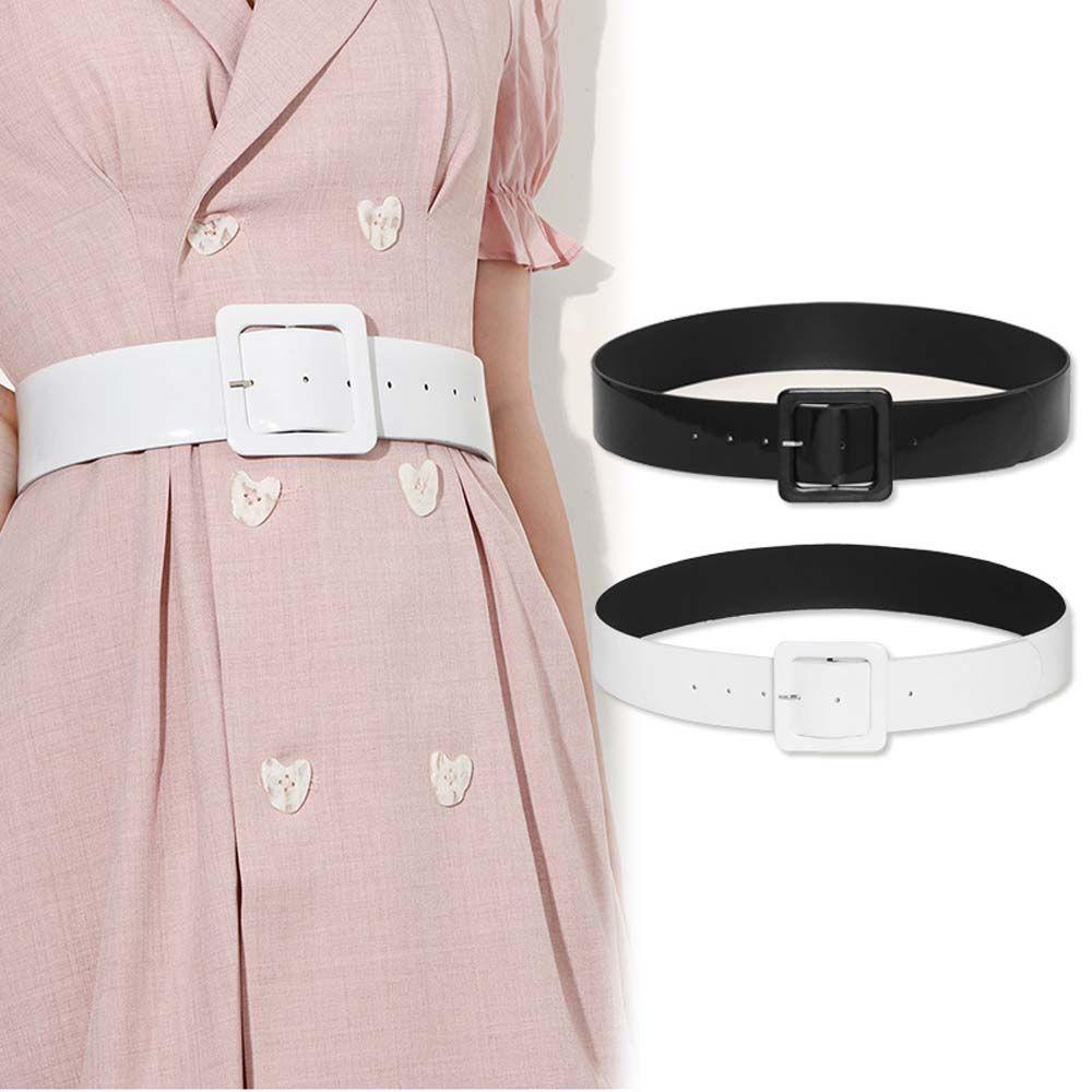 RALPH Simple Dress Waistband Personality Metal Buckle Waist Strap PU Leather Belt Square Buckle Sweater Clothing Accessories Adjustable Skirt Coat Decorations Coat Women Waistbands/Multicolor